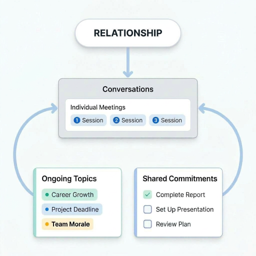 The 1:1 meeting is the most visible surface of something much larger. It's where topics get discussed, commitments get made, concerns get raised, and trust gets built or eroded. But the real value isn't in any single meeting. It's in the continuity between meetings, the accumulation of context, follow-through, and mutual understanding over months and years.